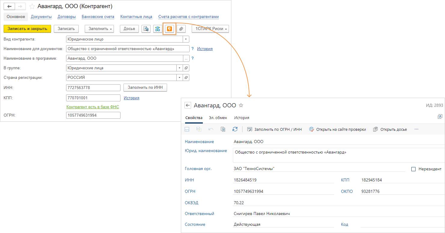 Кроме того, проверка благонадежности контрагента выполняется прямо в системе — без перехода на сторонние сайты и ручного сохранения отчетов. Благодаря интеграции с сервисом «Контур.Фокус» можете загрузить экспресс-отчет, выписку из ЕГРЮЛ/ЕГРИП и финансовый анализ, сохранить их в досье и зафиксировать результат проверки. Статус отображается в карточке и учитывается при согласовании договоров, это помогает своевременно оценить риски и приять обоснованные решения.