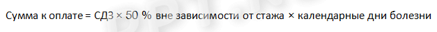 Учитывая общие правила выплаты пособий по нетрудоспособности и нюансы, выделяющие расчет пособия при уходе за больным ребенком, выведем формулы расчета пособия для рассматриваемого случая.