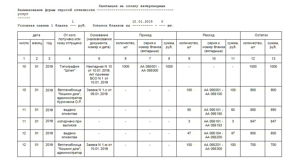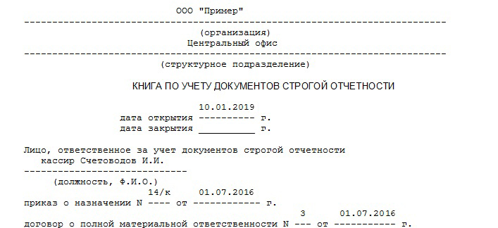 Книга учета бланков строгой отчетности: образец заполнения