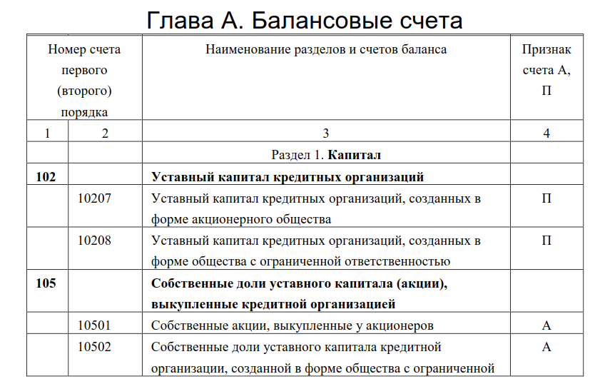 - глава А — балансовые счета;