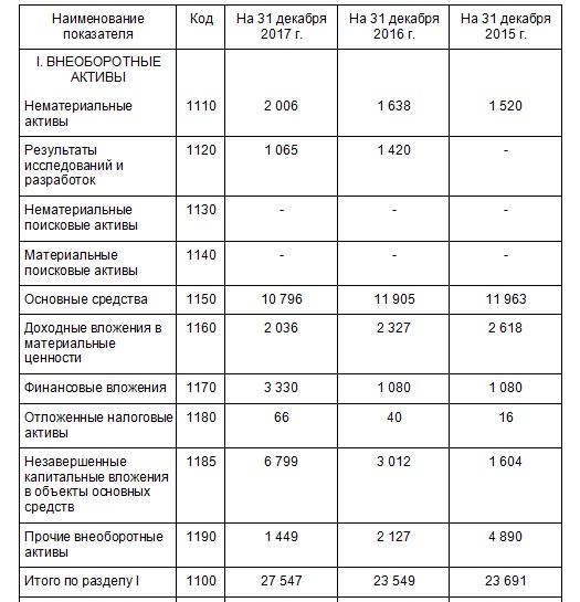 Те материальные ценности, которые не участвуют в ежедневном обороте организации, принято называть внеоборотными (ВА). В отчетном бланке им посвящен раздел 1, который в утвержденном Минфином варианте выглядит так: