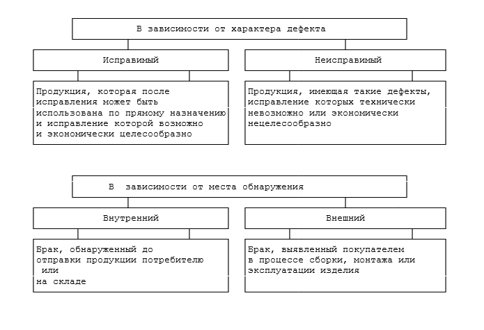 В зависимости от возможности использовать изделие с дефектами и от того, почему, где и в какой момент возникает такой дефект, существуют следующие его виды: