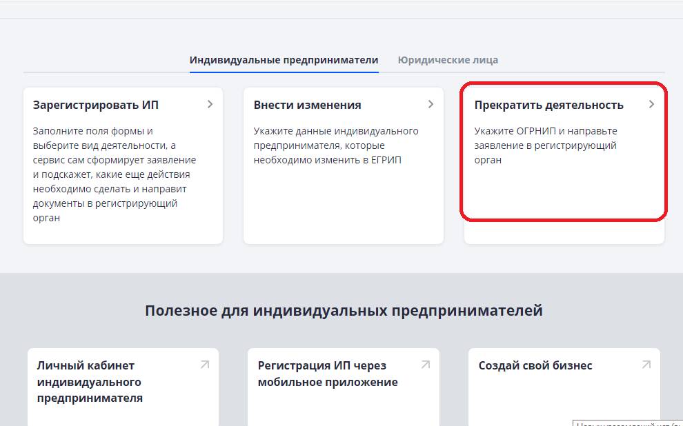 Шаг 3. Выберите раздел «Прекратить деятельность».