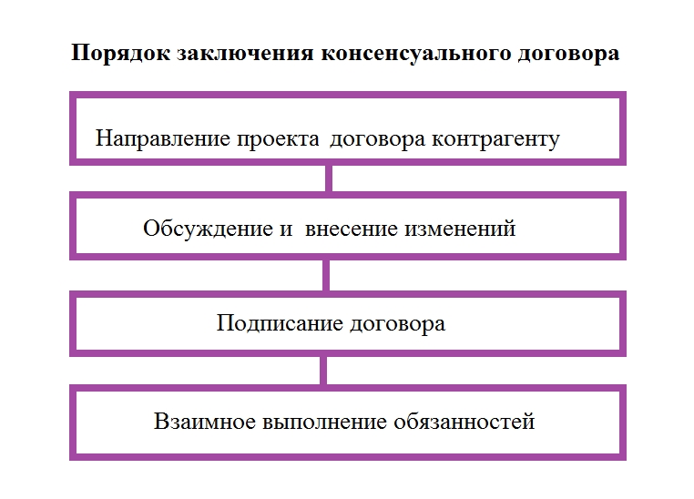 Консенсуальные договоры — это договоры, которые считаются заключенными и приобретают юридическую силу с момента, когда были согласованны все существенные условия.