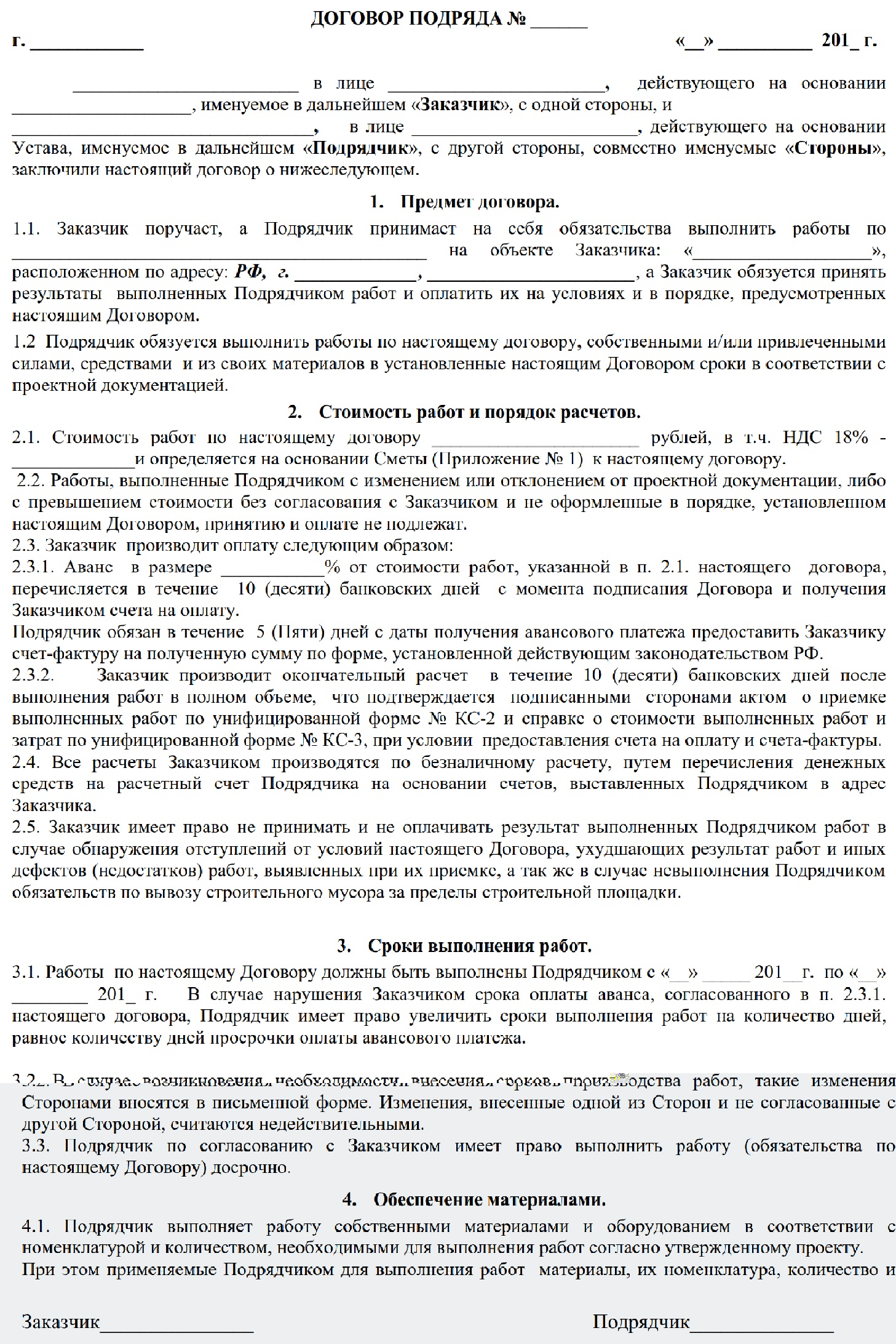 Формы договоров подряда различны. В каждом конкретном случае необходимо выбрать образец договора с учетом особенностей предстоящих отношений сторон и их существенных условий.