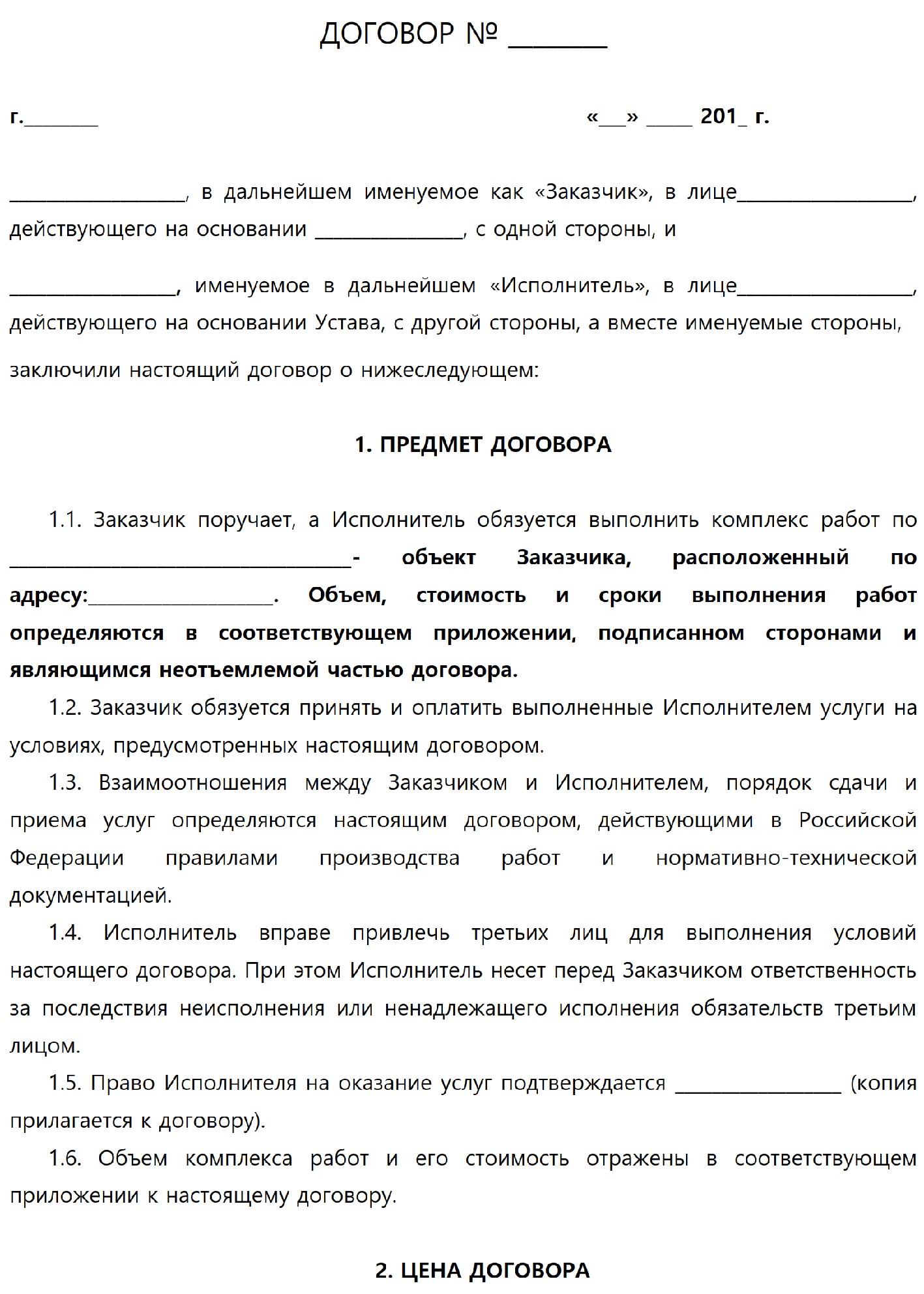 Предмет должен быть сформулирован максимально четко и определенно. Это, прежде всего, наименование работ (описание их объема, содержания, процесса), а также их результат (объект и его инженерно-технические параметры).