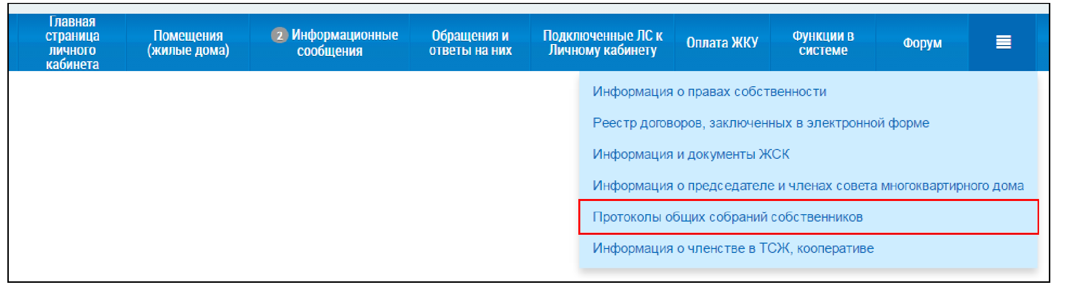 Шаг 1. Проходим авторизацию в личном кабинете ГИС ЖКХ и выбираем вкладку «Протоколы общих собраний».