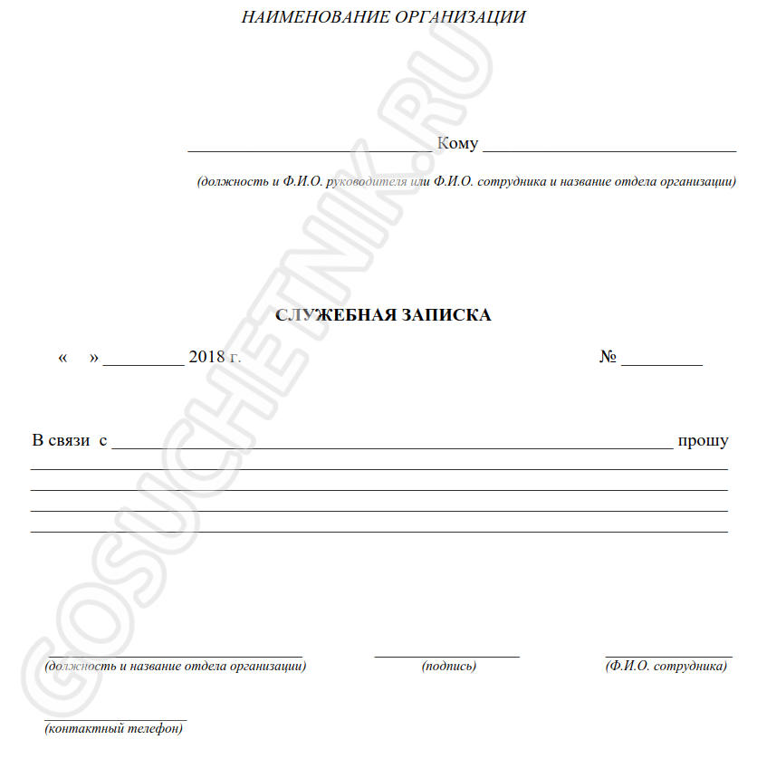 Служебная записка — это внутренний документ учреждения, цель которого — донести до руководства и других сотрудников важную информацию и побудить к принятию определенных решений. Это способствует усовершенствованию процесса управления ресурсами организации, эффективности ее работы.