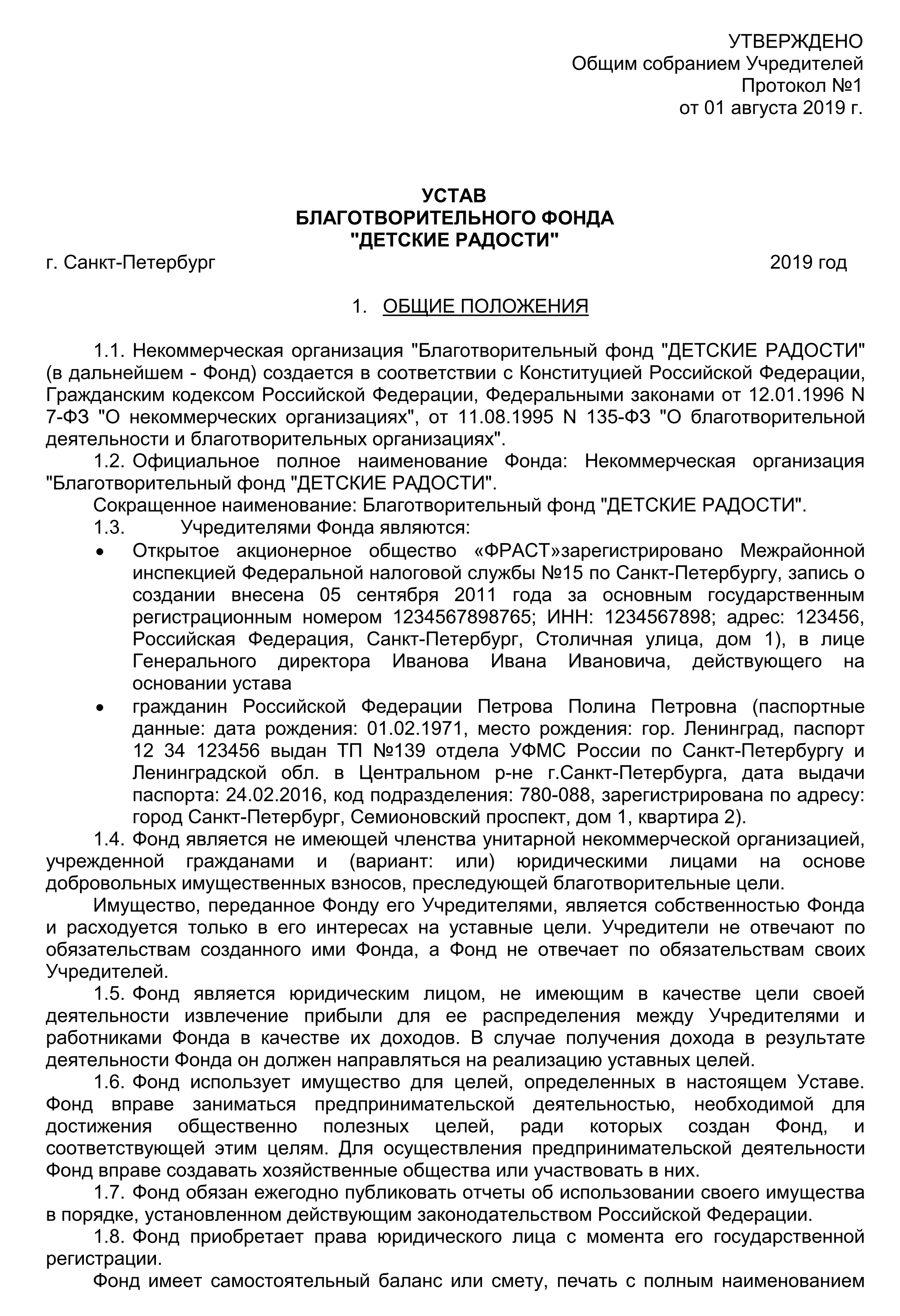 Образец устава благотворительного фонда 2025 года