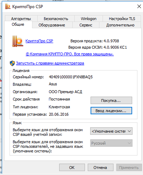 Откройте вкладку с описанием программы КриптоПро CSP и убедитесь, что установлена последняя версия ПО.