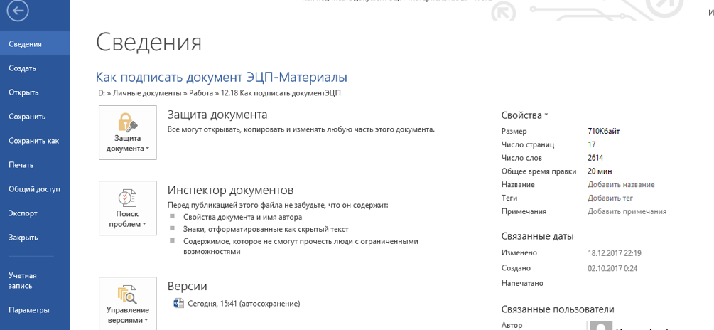 Для того чтобы подписать документ электронной подписью в word, в MS Word 2010 выполните следующие действия.