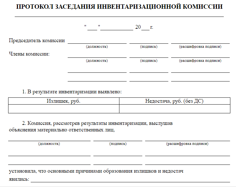 Образец протокола заседания инвентаризационной комиссии