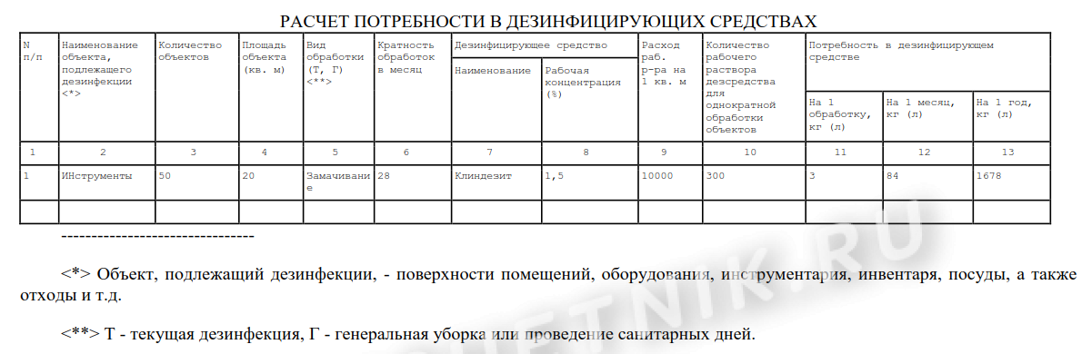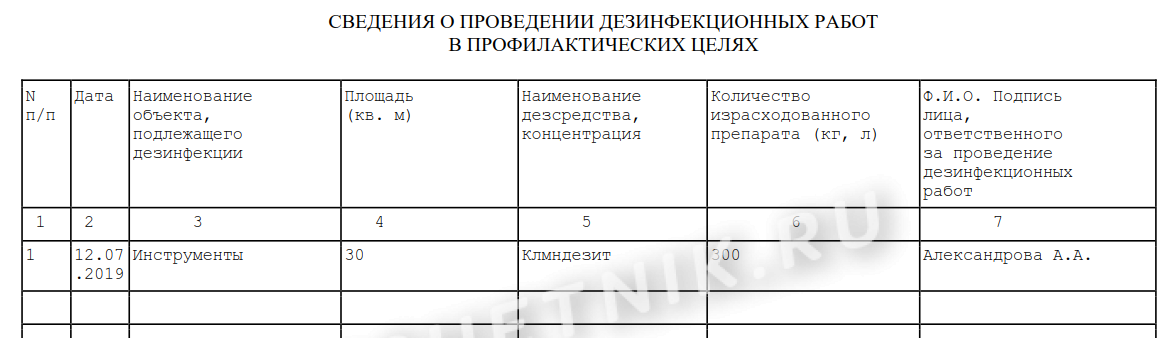 Как заполнить таблицу о проведенной дезинфекции