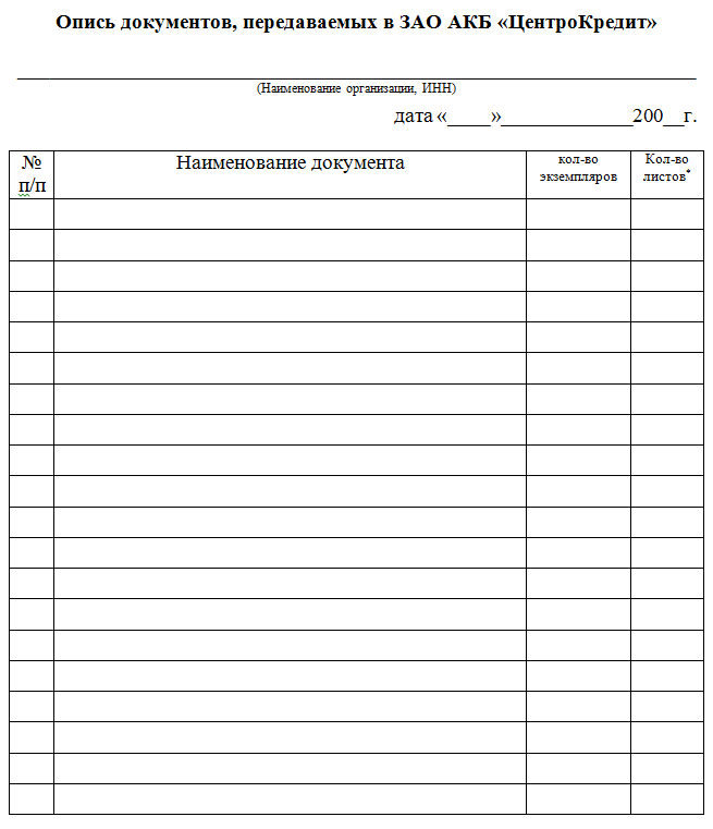 Форма составления такого списка свободная, бланк описи передачи документов существенно различается у разных организаций. Важным является лишь наличие визы отправителя и принимающей стороны.