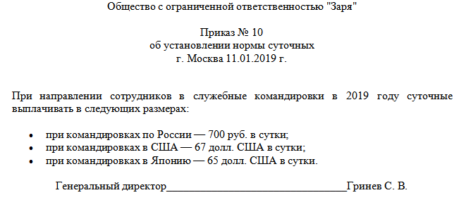 Приказ о норме суточных