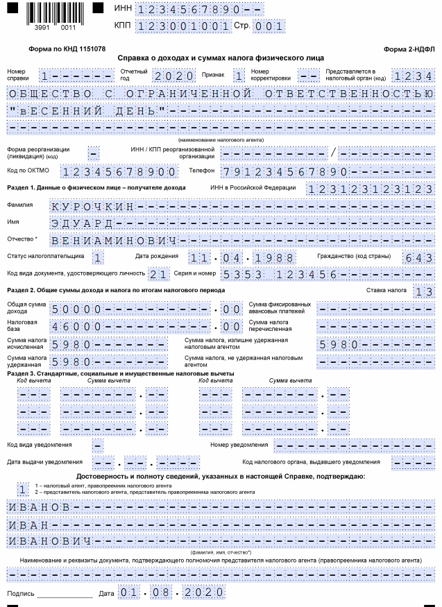 Посмотрим, как отражается материальная помощь в 2-НДФЛ, на примере.
