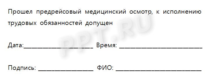 «Прошел предрейсовый медицинский осмотр, к исполнению трудовых обязанностей допущен».