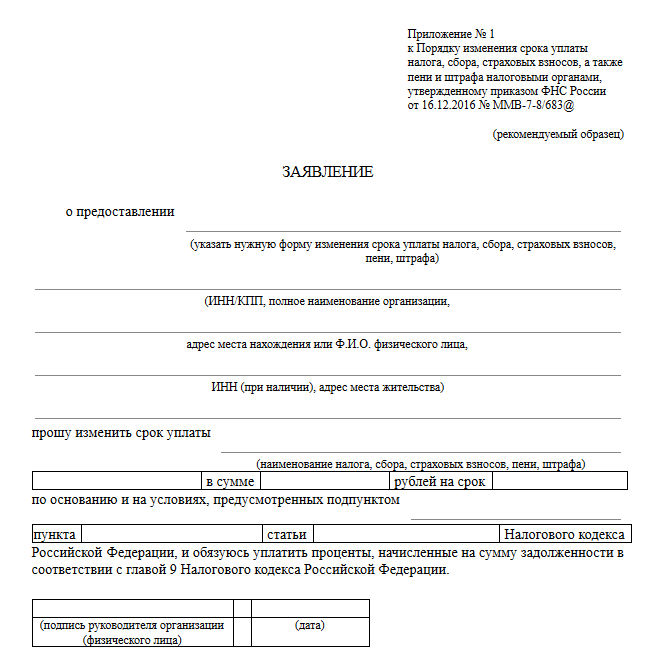 - о какой форме изменения срока перечисления просит налогоплательщик (формы перечислены выше);