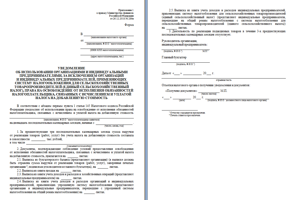 - уведомление по форме, данной в приказе Минфина от 26.12.2018 № 286н;