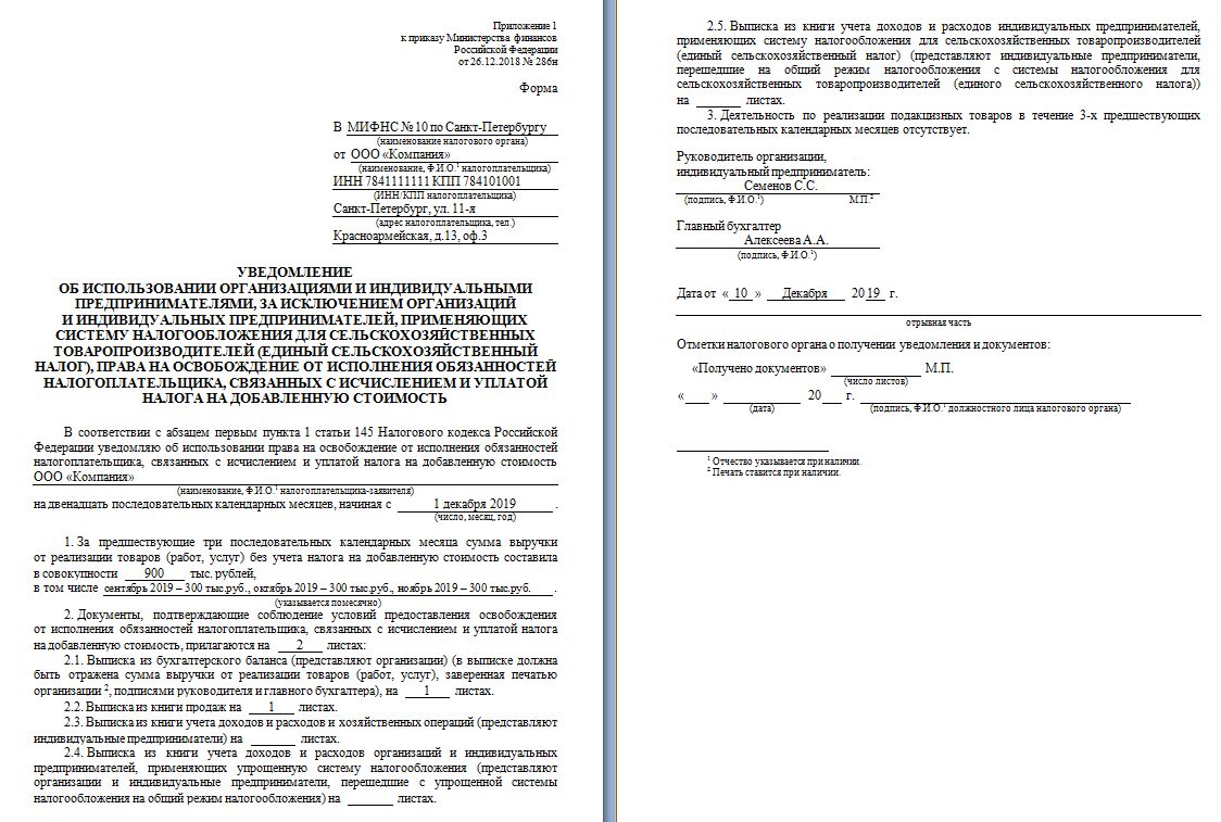 Чтобы получить освобождение от налога на добавленную стоимость, необходимо подать в инспекцию по месту регистрации: