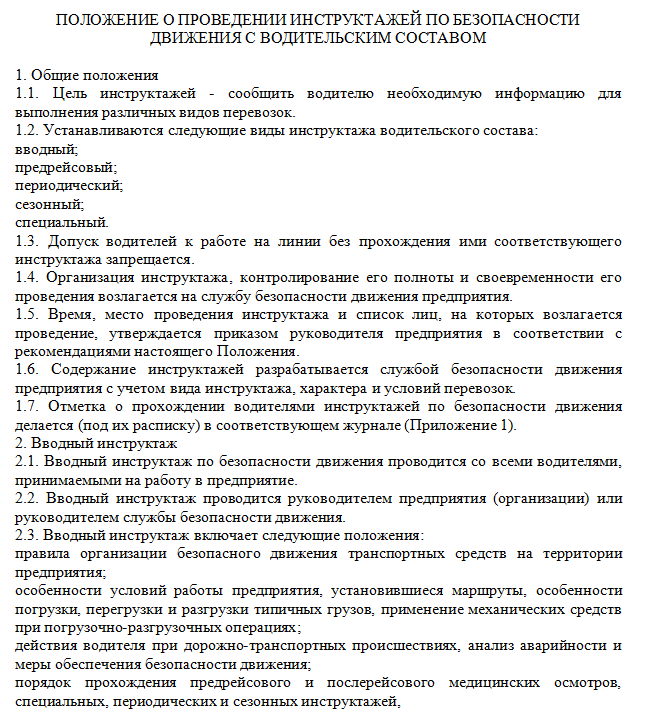 Инструктаж водителей по безопасности дорожного движения: периодичность