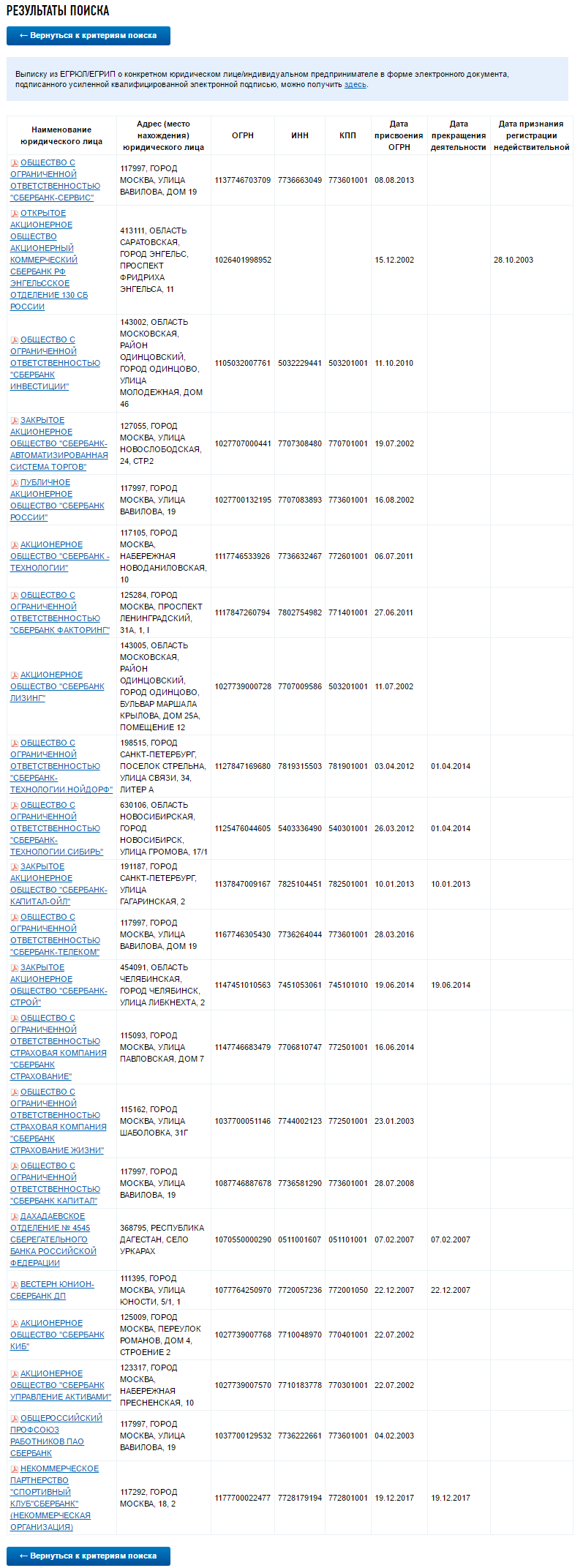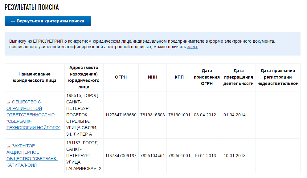 Результаты поиска могут быть неоднозначными. Например, мы искали Сбербанк, расположенный в Санкт-Петербурге, а получили две дочерние фирмы кредитной организации.