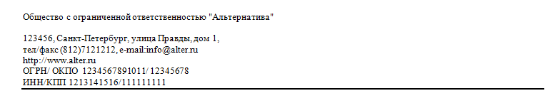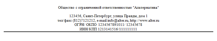 | ЮРИДИЧЕСКИЙ АДРЕС | 123456, г. Москва, ул. Подвойского, д. 14, стр. 7 |