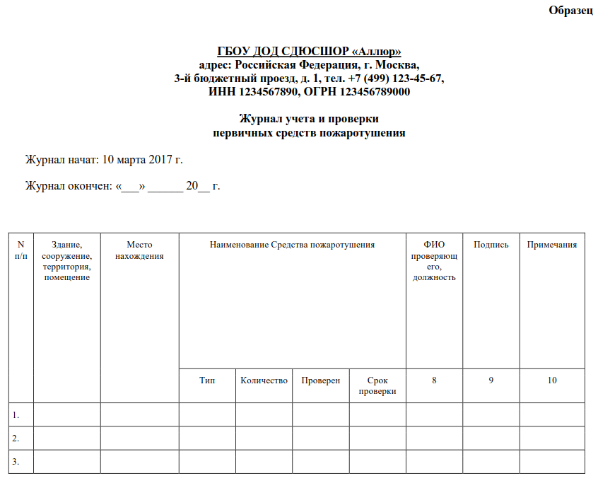 Нормы безопасности не обязывают составлять единый реестр по всему комплексу первичных устройств тушения. Ни к его форме, ни к содержанию требования не определены. Если для организации оптимальным является фиксация всех устройств, используемых на начальном этапе ЧС, существуют варианты: