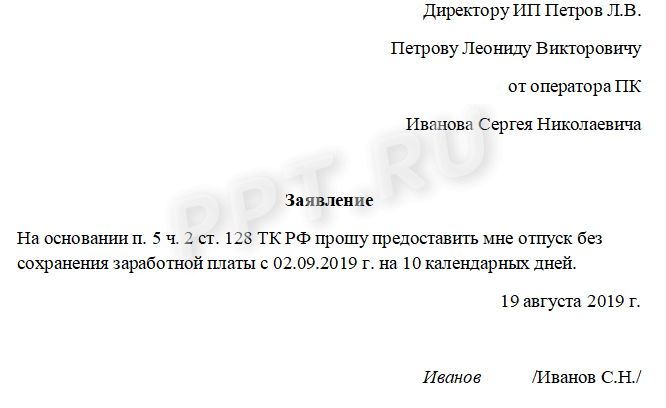 Статья 128 ТК РФ. Отпуск без сохранения заработной платы