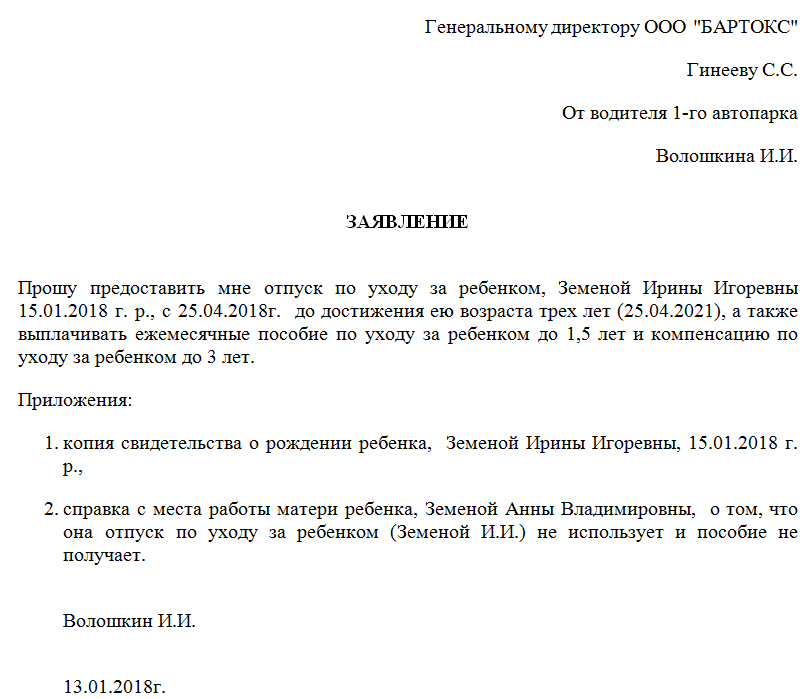 - причина, по которой родитель будет отсутствовать на работе, например по уходу за малышом до достижения им возраста трех лет (продолжительность берется из заявления папы);