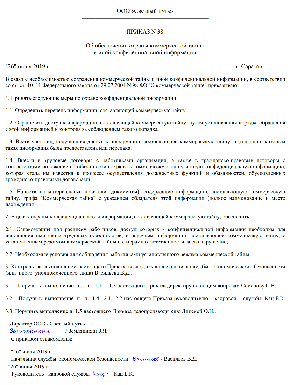 Шаг 3. Утвердить порядок обращения с информацией ограниченного доступа, издать Положение о коммерческой тайне и контролировать его соблюдение;