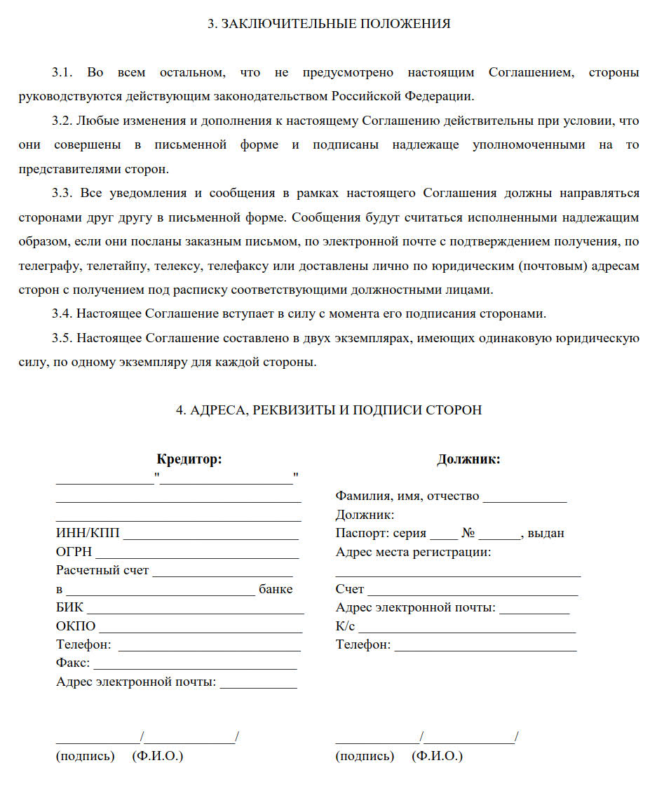 Соглашение о прощении долга — это документ, составленный участниками первоначального договора, по которому прекращаются обязательства должника.