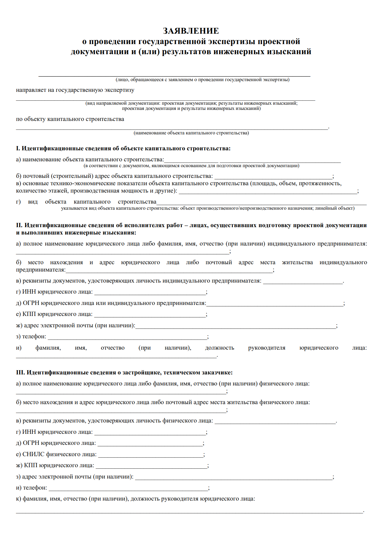 - заявление с указанием адреса и технико-экономических показателей капитального объекта от имени застройщика, технического заказчика, уполномоченного лица;