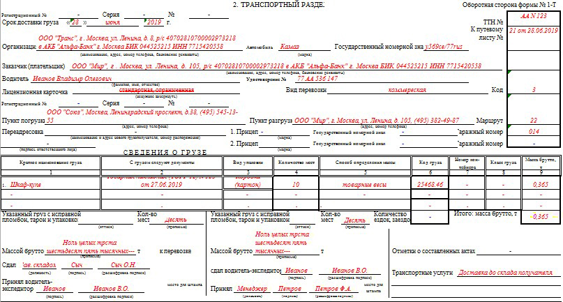 Как следует из Указаний по заполнению, ТТН состоит из двух разделов.