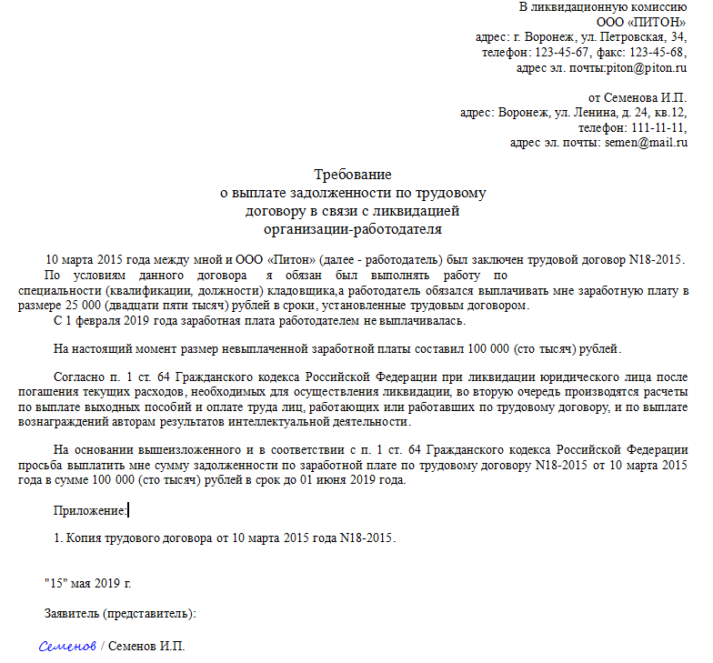 Если сотрудник считает, что его права нарушены, он может обратиться в ликвидационную комиссию с заявлением.