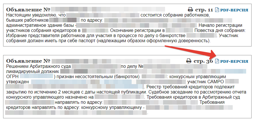 Посредством этого объявления вы можете скачать электронную версию сообщения, нажав на знак «PDF-версия».