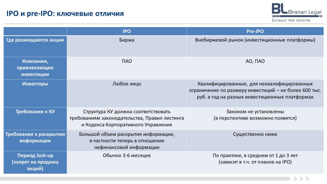 В будущих постах разберем детали проведения pre-IPO и IPO, рассмотрим тенденции и планируемые изменения законодательства в этой сфере, а также роль регулятора (Банка России) в этой области.