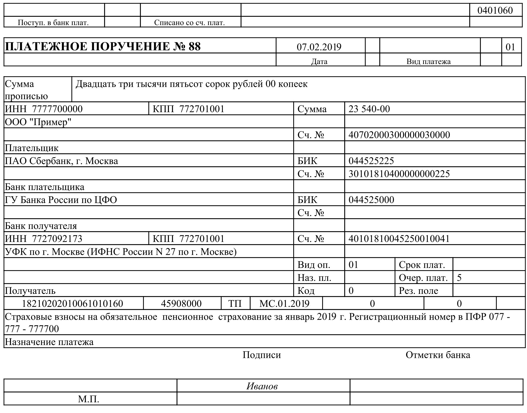 Пример платежного поручения на страховые взносы 2020: пошаговое заполнение