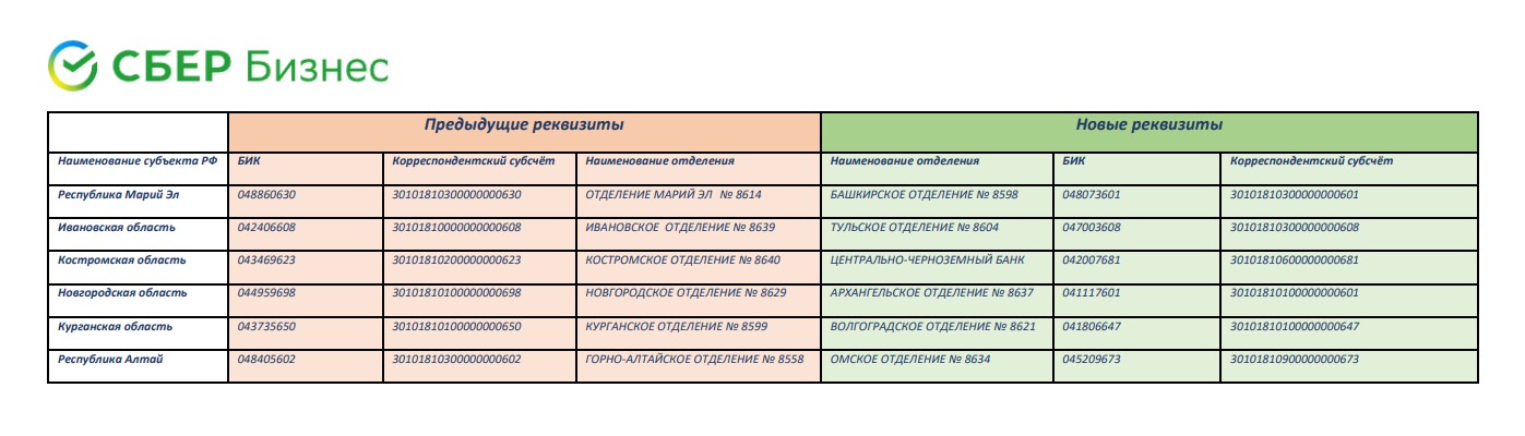 Сбербанк объявил о замене номеров БИК и корреспондентского счета шести территориальных отделений.