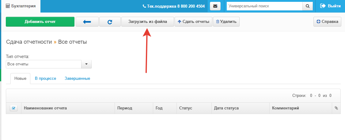 Шаг 2. В горизонтальном меню раздела "Отчетность" нажмите кнопку "Загрузить из файла":