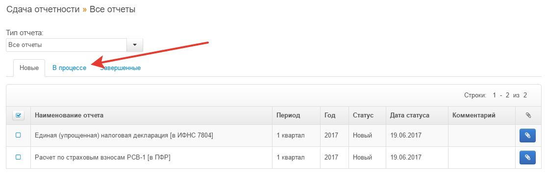 Для отчетов, находящихся в процессе отправки или уже отправленным, будет доступен статус и дата изменения этого статуса. Именно здесь будет видно, прошел ли отчет отправку.