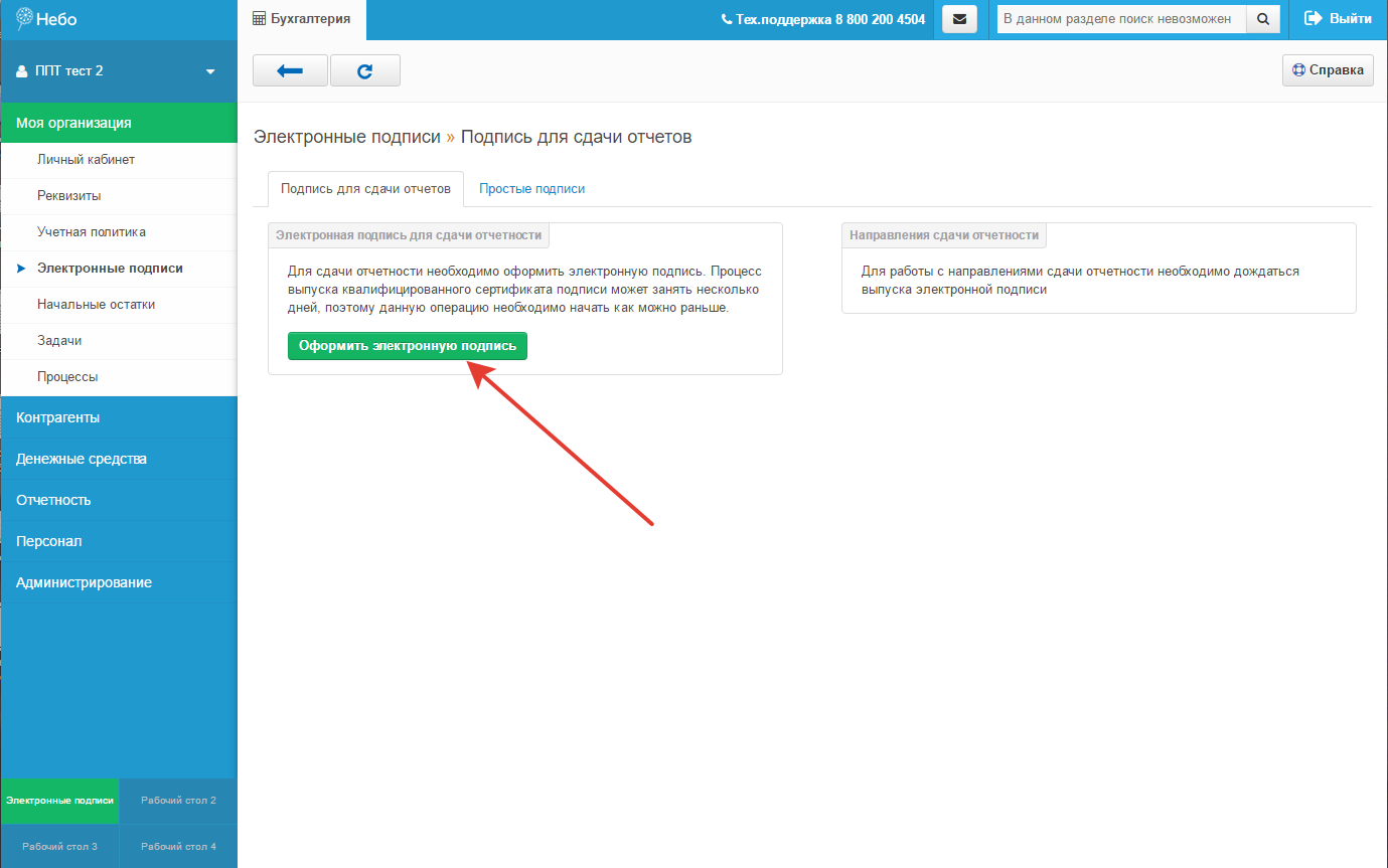 Как подключить отправку отчетности и сформировать ЭЦП в Небе?